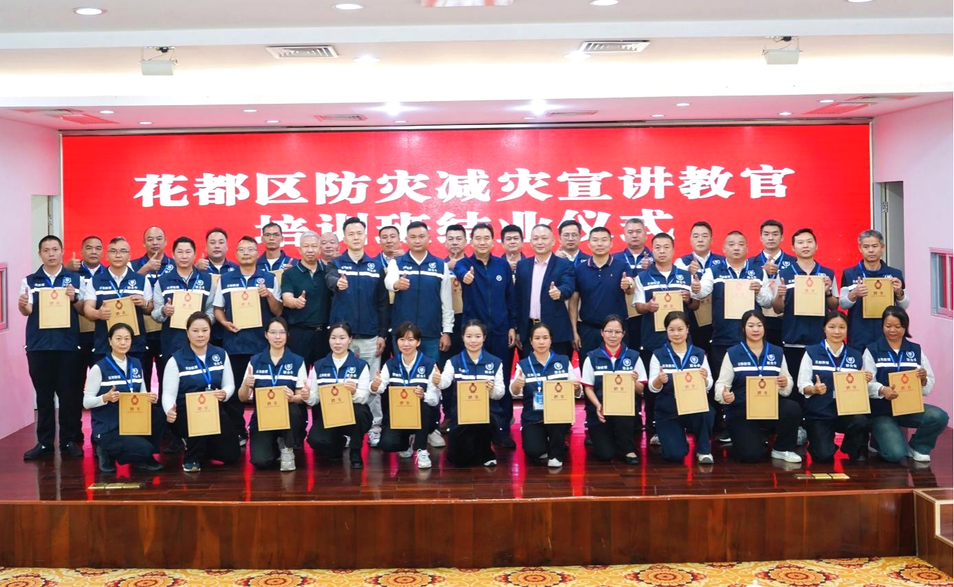 3月8日下午,广州市工人疗养院会议中心内誓言铿锵,花都区防灾减灾宣讲教官培训班结业仪式在此举行。来自全区11支社会救援队伍的32名骨干教官圆满完成培训考核,接过教官证与聘书,广州花都防灾减灾宣讲教官团首批成员正式成团亮相。这支由专业救援力量转化而来的宣讲队伍,将深入社区、校园、企业和乡村,把应急知识送进千家万户,以高水平安全护航高质量发展,为广州北部增长极筑起坚实的安全防线。